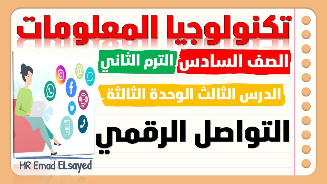 🎥 في هذا الفيديو من قناة افهم تكنولوجيا مع مستر عماد السيد نشرح درس التواصل الرقمي من منهج تكنولوجيا المعلومات والاتصالات الصف السادس الابتدائي الترم الثاني بأسلوب سهل ومبسط يناسب طلاب المرحلة الابتدائية 👨🏫💻