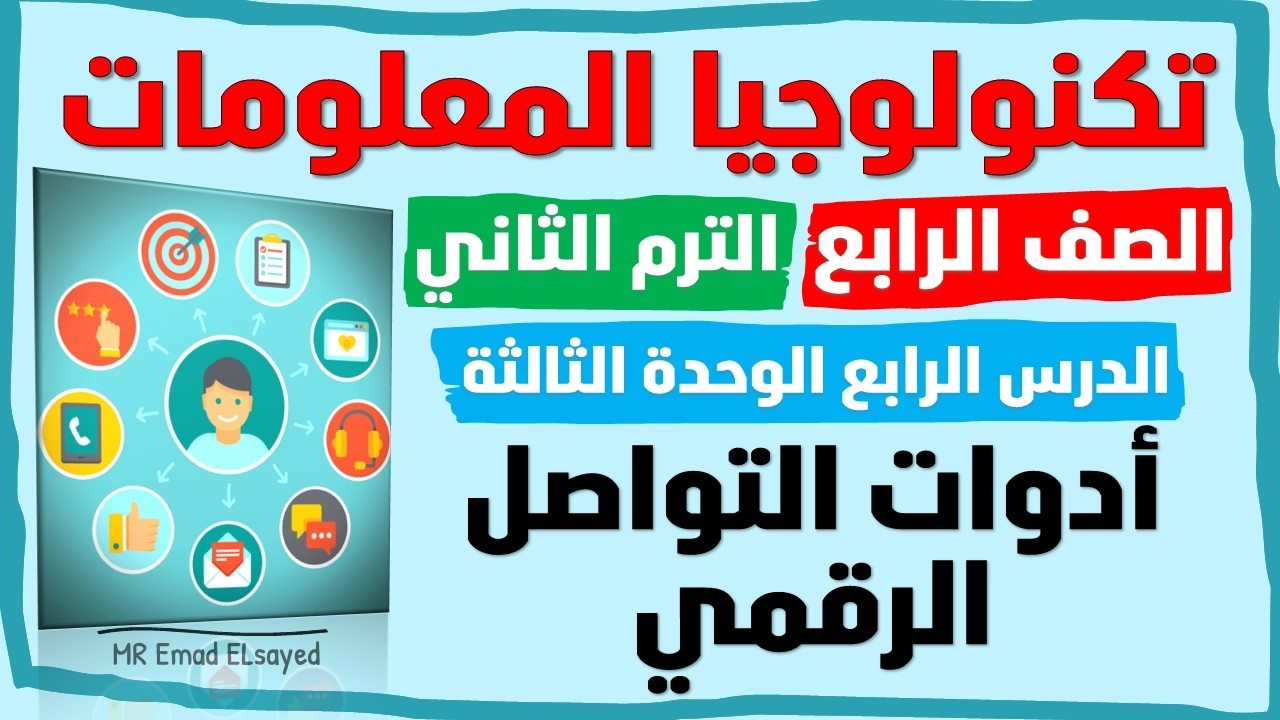 شرح درس أدوات التواصل الرقمي من منهج تكنولوجيا المعلومات والاتصالات الصف الرابع الابتدائي الترم الثاني – الفصل الدراسي الثاني المنهج الجديد 2026 بطريقة مبسطة تناسب طلاب المرحلة الابتدائية.